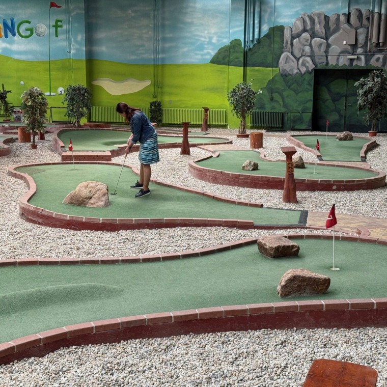 Zmenšená verze klasického golfu: pískové bunkry, skalky i terénní nerovnosti. Celá hra s 18 jamkami vás pohltí svou atmosférou.